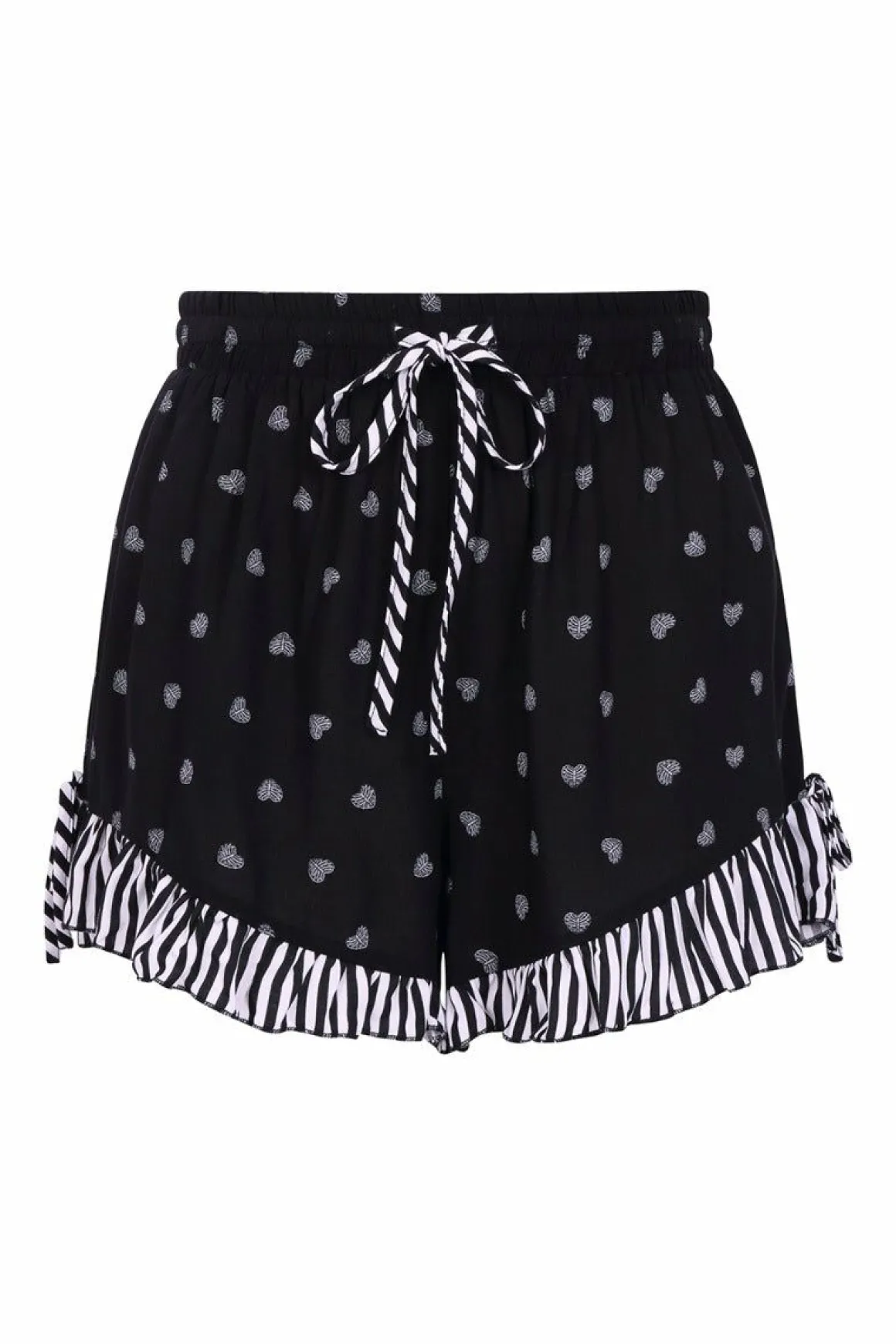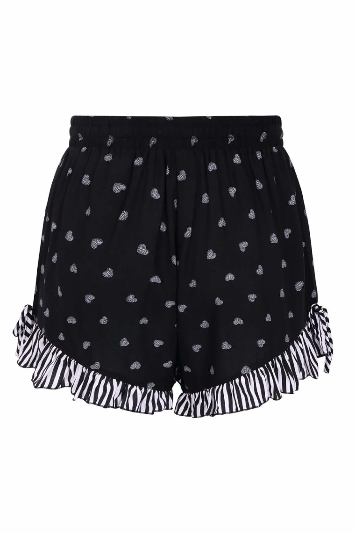 - Black Shorts Decorated With Ribcage Heart Motifs